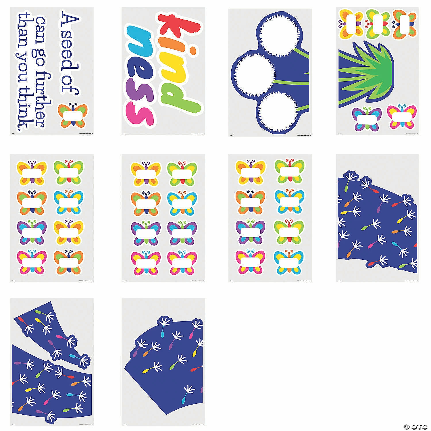 This colorful bulletin board makes it clear that a little kindness can go a long way! A great addition to your classroom decorations, this set includes 30 butterflies with spaces for your students’ names. Laminate the set and re-use it year after year with dry-erase markers. Includes 30 blank cutouts. Cardstock. (40 pcs. per unit) 6 1/2″ – 25″ x 5″ – 8″ on ten 17″ x 26″ sheets. ยฉย OTC