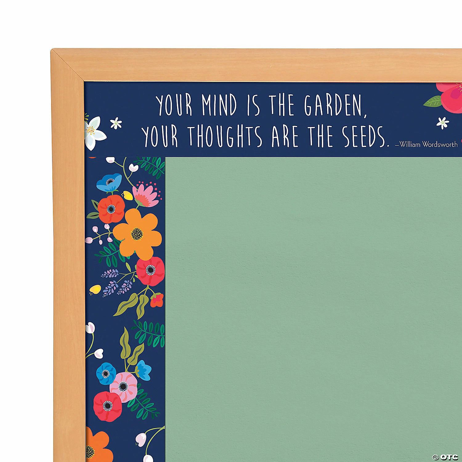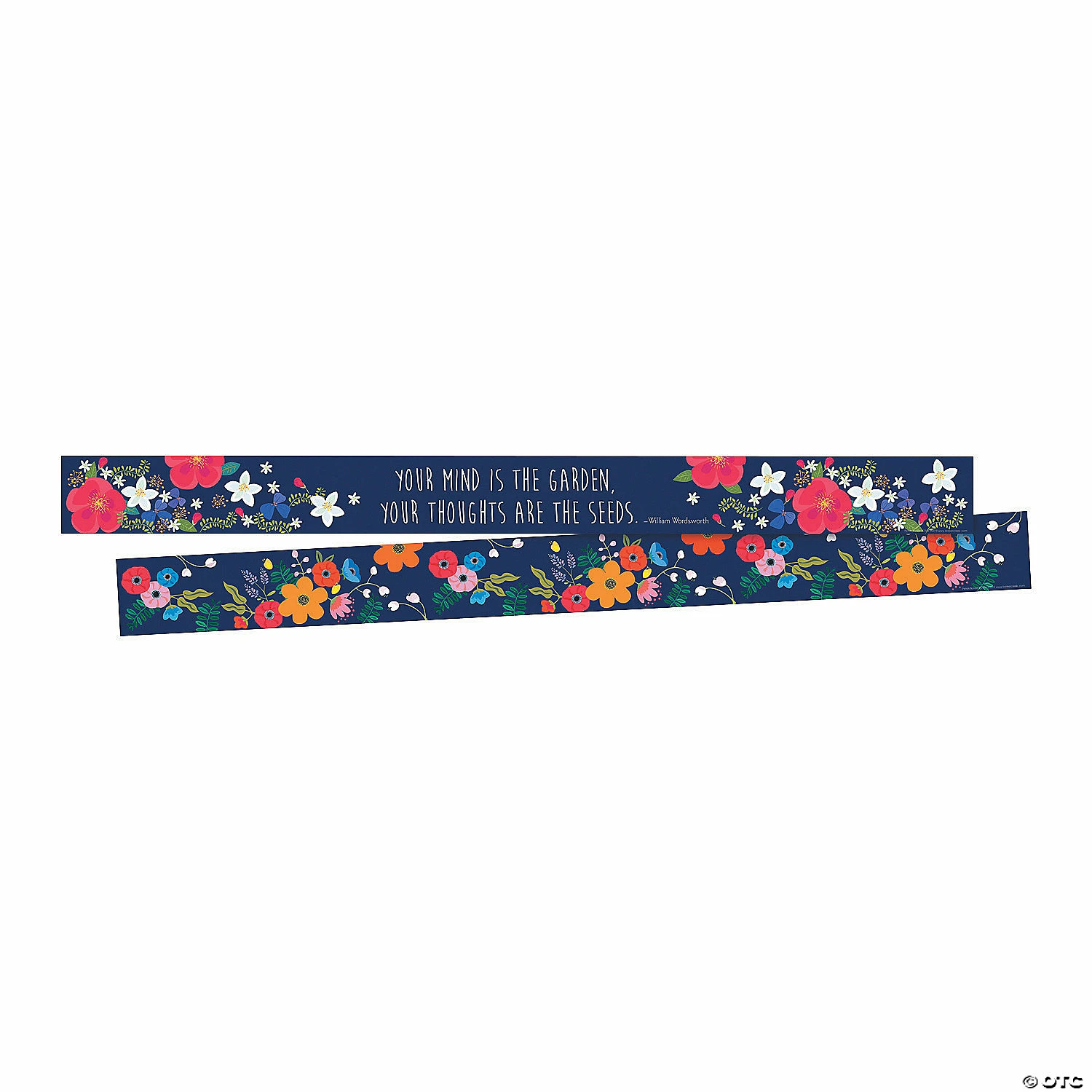 Featuring a classic quote from William Wordsworth, these bulletin board strips will add a stylish and fun touch to your classroom bulletin board, white board or window! One side of these bulletin board supplies features beautiful blooms against a navy blue background, and the other side the Wordsworth quote โYour mind is the garden, your thoughts are the seedsโ. Cardstock. (1 dozen per unit) Each, 35″ x 3 1/2″; assembled, 35 ft. x 3 1/2″. ยฉ Kibo Software, Inc. and Barker Creek