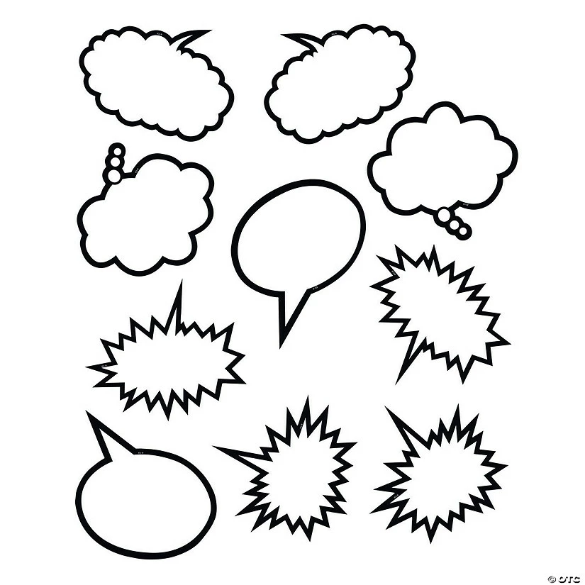 Say something and make a stylish statement at the same time! A versatile addition to classroom dรฉcor, these black and white speech bubbles can be used in a variety of bulletin board displays. Use them to dictate classroom rules, label bins or state key reminders pertaining to lesson plans. No matter what you want to say or call attention to, the options are practically endless! Paper. (30 pcs. per unit) 6″ x 6″ ยฉ 2019 Teacher Created Resources. All Rights Reserved.