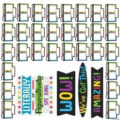 Strengthen students’ writing and language skills with ease! Perfect for language arts curriculum and learning activities, this bulletin board set comes with enough prompt cards for the entire class. Each one includes space for students to write down an idiom of their choice at top, and then they can draw the literal and figurative meaning below. Finally, to really show they’ve mastered the concept of literal vs. figurative language, have them use the idiom in a sentence. Once everyone’s done, you can hang as classroom dรฉcor for a dazzling display they’ll be proud to see each day! Includes 30 cutouts. Paper. (34 pcs. per set) 8 1/2″ – 11 1/4″ x 16 3/4″ – 19″ ยฉย OTCBuild a Board Instructions