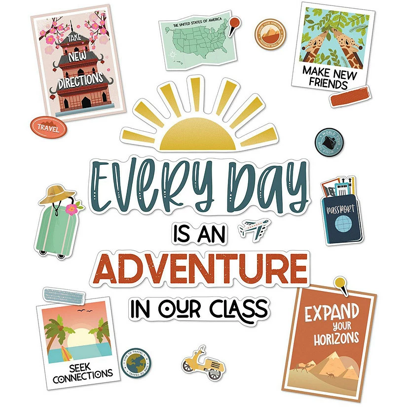 Let’s Explore Classroom Bulletin Board Set: Motivate students to create learning adventures each day with Carson Dellosa’s travel classroom decor-themed Let’s Explore Every Day is an Adventure Bulletin Board Set!What’s Included: The 42-piece bulletin board set includes an “Every Day is an Adventure” message, world globe and travel map accents, motivational poster set, and other travel décor. A resource guide is also included.Durable Classroom Supplies: Each piece in the inspirational wall décor set is made from a durable material to use for cork board and bulletin board decorations, classroom posters, a welcome banner, daycare decorations, and more.Inspirational Classroom Décor: Help students maintain a positive mindset with adventure décor that includes inspirational messages like “Every Day is an Adventure”—perfect for motivational classroom decorations, locker décor, bulletin board décor.Why Carson Dellosa: For more than 40 years, Carson Dellosa has provided solutions for parents and teachers to help their children get ahead and exceed learning goals. Carson Dellosa supports your child’s educational journey every step of the way.
