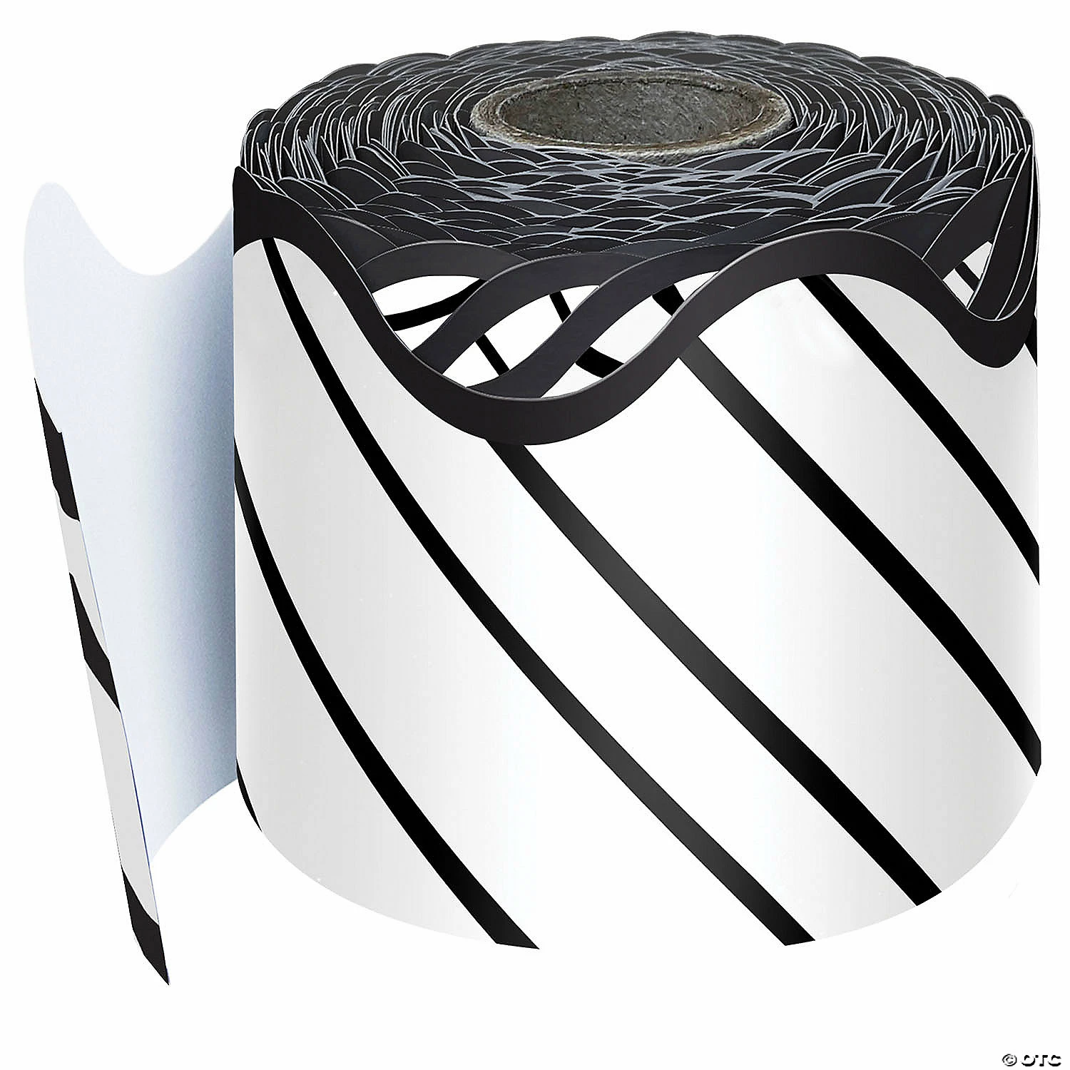 Give your bulletin board displays the perfect finishing touch with eye-catching border trim. Great for year-round use, the stylish striped design of this rolled scalloped border will add a fun and festive finishing touch to any display during any season. Printed on thick but flexible paper, this border roll is ready-to-use for the classroom and adds the perfect touch of style to bulletin boards, desks, wall decor, and so much more. Cut and layer borders to add dimension or use individually for a classic style. Transform your classroom into a warm and welcoming space for all students with the bright, animated positivity of the Kind Vibes collection. Make sure to check out coordinating Kind Vibes products to create a cohesive classroom theme. Each Kind Vibes Black & White Stripes large Rolled Scalloped Border features a continuous border roll, measuring 2.25″ x 65′. Sold as a pack of 3 rolls.Β Β Special Shipping Information:Β This item ships separately from other items in your order.Β This item cannot ship to a P.O. Box.Β This item may be subject to additional processing days.Β Β Item is not eligible for expedited shipping.Β Β Β Β You may initiate a return for unused items within 30 days, if the items are in original packaging with all original materials included with the shipment.