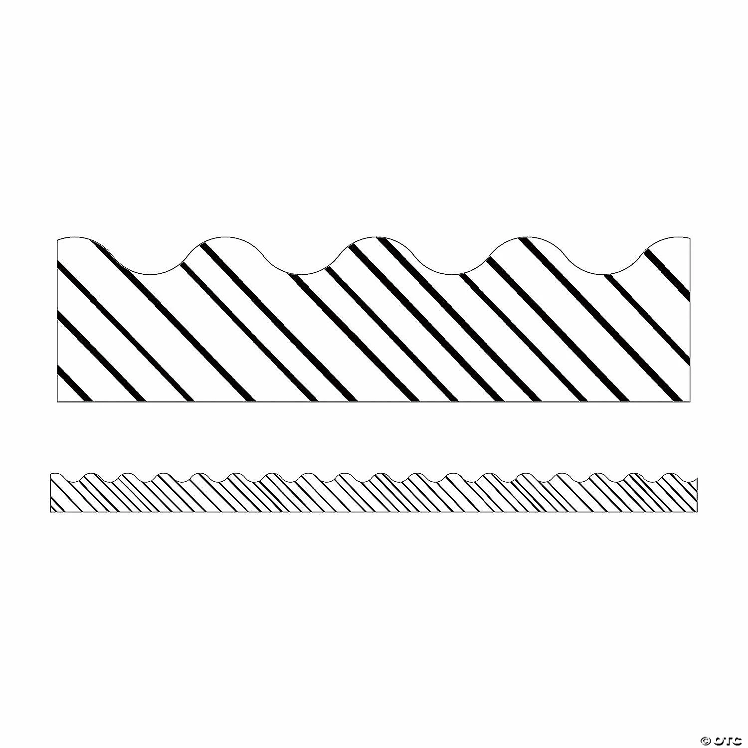 Give your bulletin board displays the perfect finishing touch the Kind Vibes Black & White Stripes Scalloped Borders. The classic design of these scalloped borders will add a fun and festive finishing touch to any display. Each pack includes 13 border strips, each measuring 3′ x 2.25″ for a total length of 39 feet per pack. Sold as 6 packs for a total of 78 strips (234 feet).Great for year-round use, these scalloped borders offer a glamorous touch of style. Printed on thick but flexible paper, these ready-to-use borders for the classroom are easy-to-customize and add the perfect touch of style to bulletin boards, desks, storage, and so much more. Cut and layer borders to add dimension or use individually for a classic style. Make sure to check out coordinating Kind Vibes products to create a cohesive classroom theme.Β Β Special Shipping Information:Β This item ships separately from other items in your order.Β This item cannot ship to a P.O. Box.Β This item may be subject to additional processing days.Β Β Item is not eligible for expedited shipping.Β Β Β Β You may initiate a return for unused items within 30 days, if the items are in original packaging with all original materials included with the shipment.
