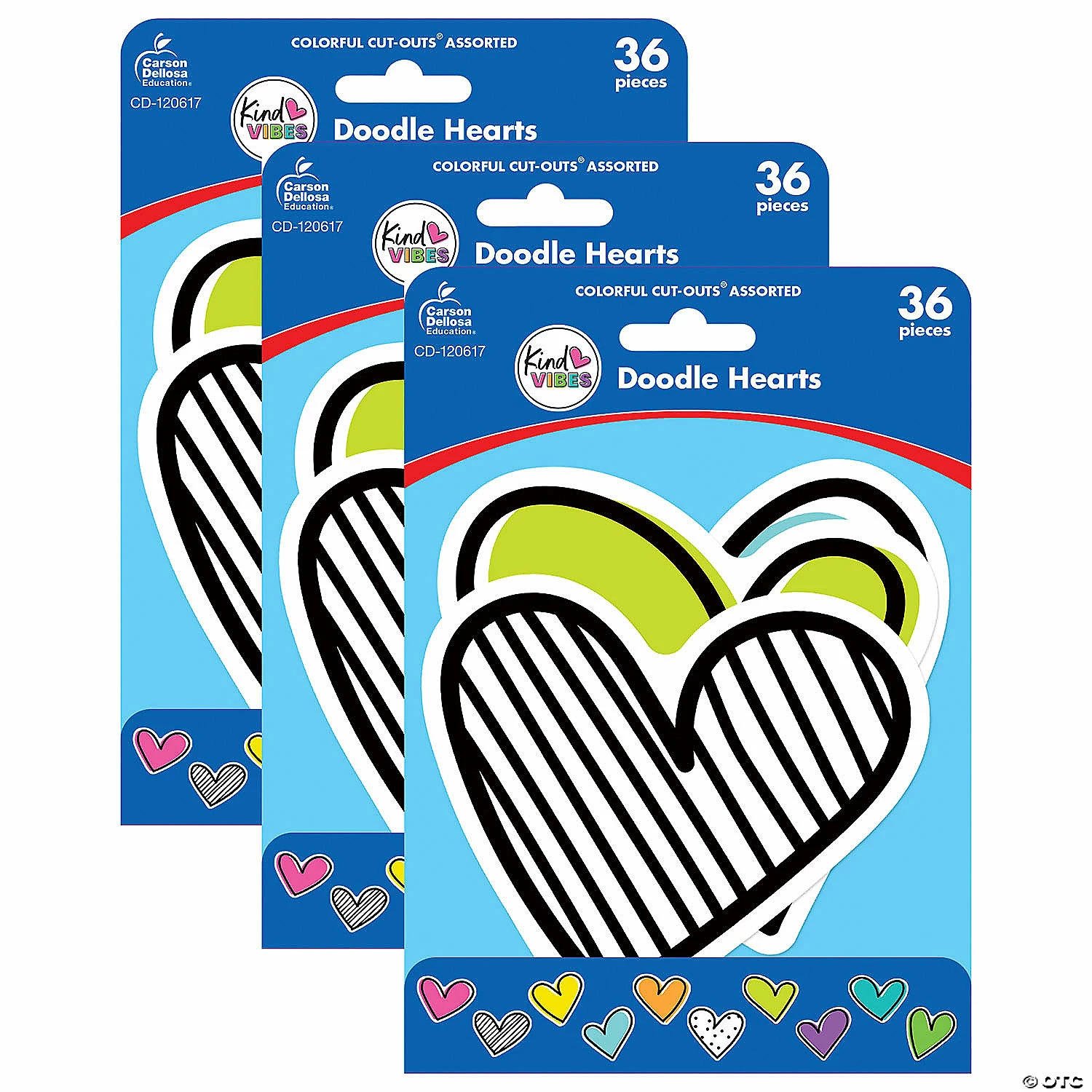 Budget โ๏ธ Carson Dellosa Education Kind Vibes Doodle Hearts Cut-Outs, 36 Per Pack, 3 Packs ๐คฉ