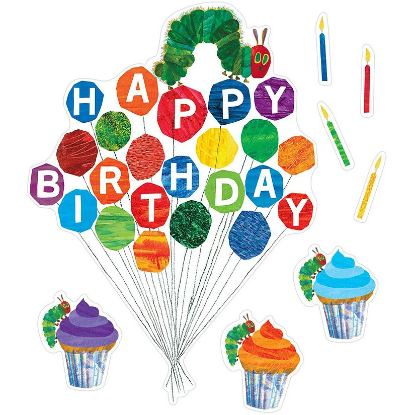 ERIC CARLE DECOR: This beautifully illustrated bulletin board features The Very Hungry Caterpillarโข and adds nostalgic meaning to the classroom.