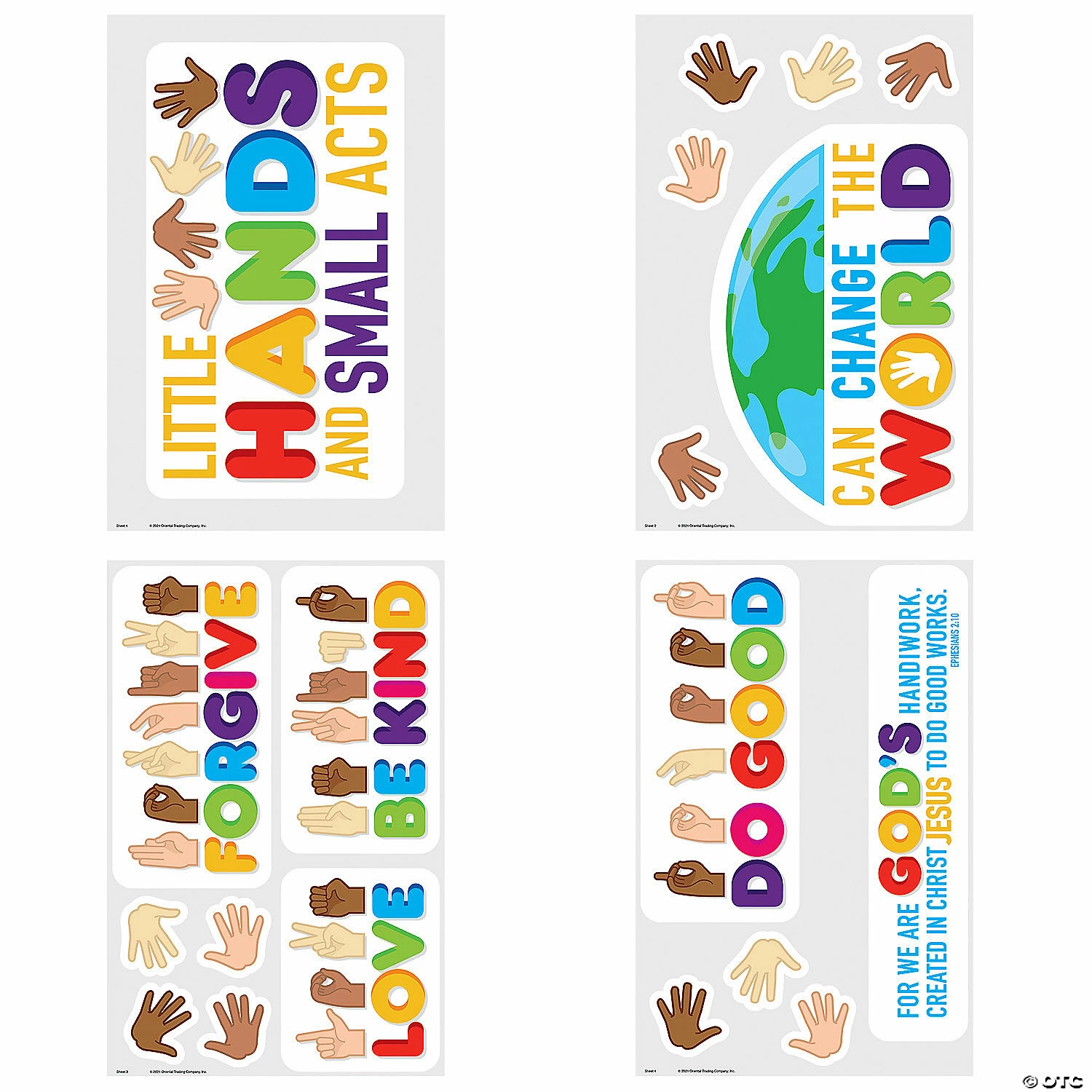 Preach kindness without saying a word! These colorful classroom decorations use sign language to spell out messages of “love,” “do good,” “be kind” and “forgive.” Brighten your Sunday School classroom or Vacation Bible School décor with this inspirational bulletin board set! Cardstock. (18 pcs. per unit) 2″ – 23″ x 2″ – 11″ © OTC
