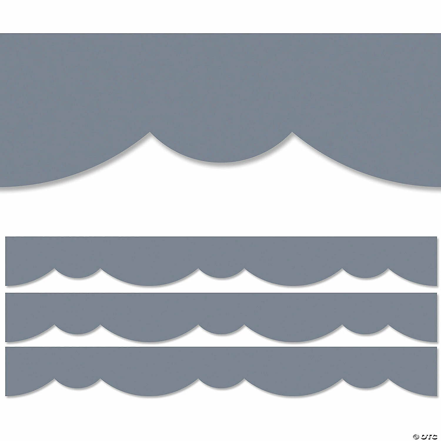 A fun, fresh twist on a solid gray border! This Charcoal Gray Stylish Scallops Border features a playful double scallop design to create a neat and easy way to edge any bulletin board or classroom display. Great for any type of school setting at any grade level! Also great for use on bulletin boards in an office, a church, a college dorm, or a senior living residence. With its versatile scallop design, this bulletin board border can be used alone to create a basic look or layered with another border for a more designer look. These EZ borders come in smaller strips, which are easier to manage and store. Each pack comes with enough borders to complete 2 full bulletin boards. Strips measure 2-3/4″ x 24″. Each pack includes 24 strips (48 feet). Sold as 3 packs for a total of 72 strips (144 feet).ย ย Special Shipping Information:ย This item ships separately from other items in your order.ย This item cannot ship to a P.O. Box.ย This item may be subject to additional processing days.ย ย Item is not eligible for expedited shipping.ย ย ย ย You may initiate a return for unused items within 30 days, if the items are in original packaging with all original materials included with the shipment.