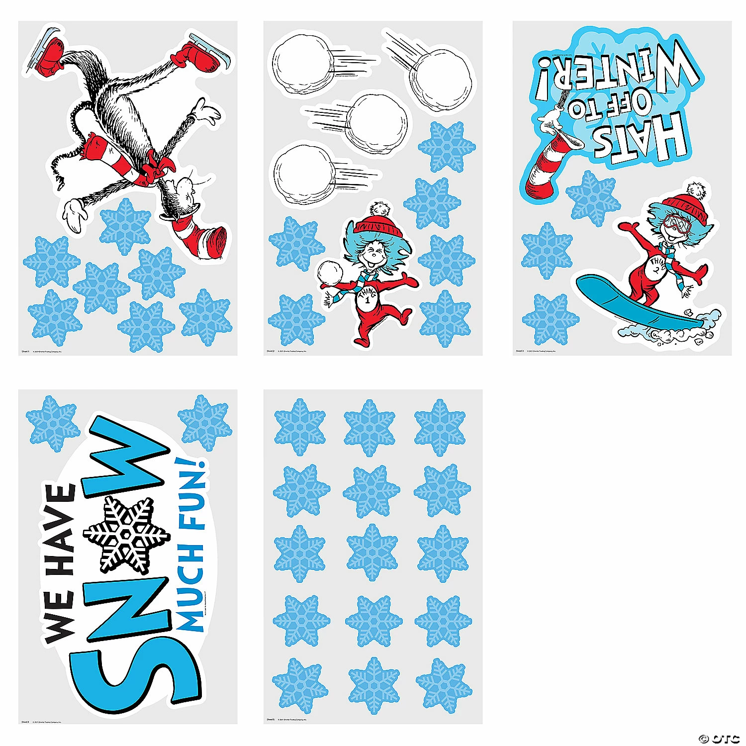 Let it snow, let it snow, let it snow! With this winter classroom décor set, you can highlight all the fun parts of winter—snowball fights! Ice skating! Skiing—with Dr. Seuss’ beloved Cat in the Hat and his friends, Thing 1 and Thing 2. Use it as a teaching aid in your lessons about weather or as a playful background to students’ unique artwork. Includes 33 blank name cutouts. Cardstock. (48 pcs. per set) 4″ – 24″ x 4 1/2″ – 21 3/4″ © OTC / TM & © 2021 Dr. Seuss Enterprises, L.P. All Rights Reserved.