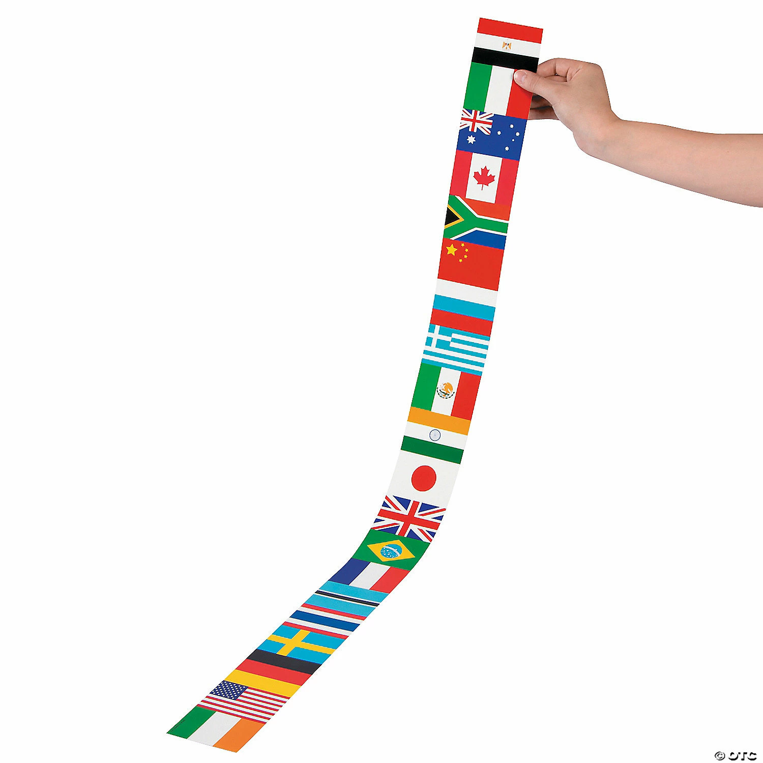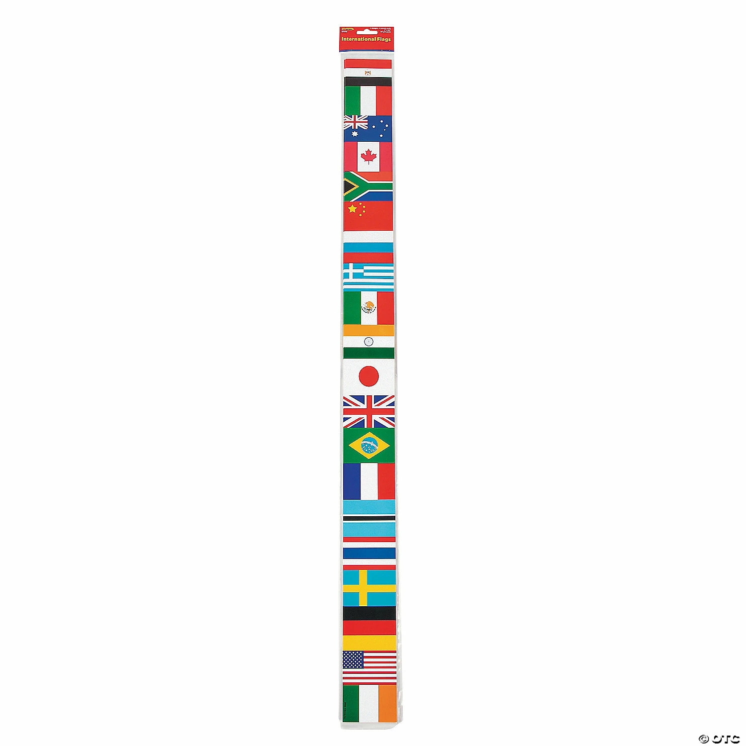 Take a trip around the world in any classroom with this fun international border. Featuring flags from all corners of the globe, this bulletin board border is the perfect addition to geography, social studies or foreign language classrooms. Shop more school supplies and easy classroom décor on our website. Paper. 39″ x 3″; assembled, 39 ft. of trim. • © Demco, Inc.
