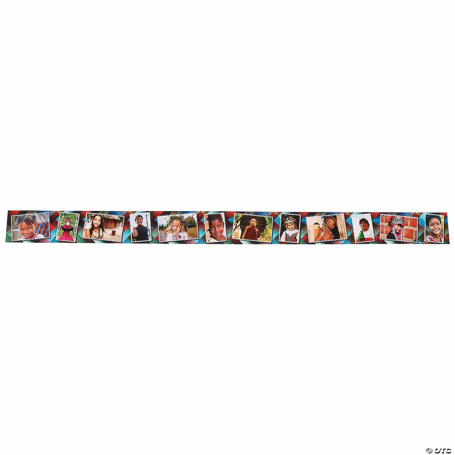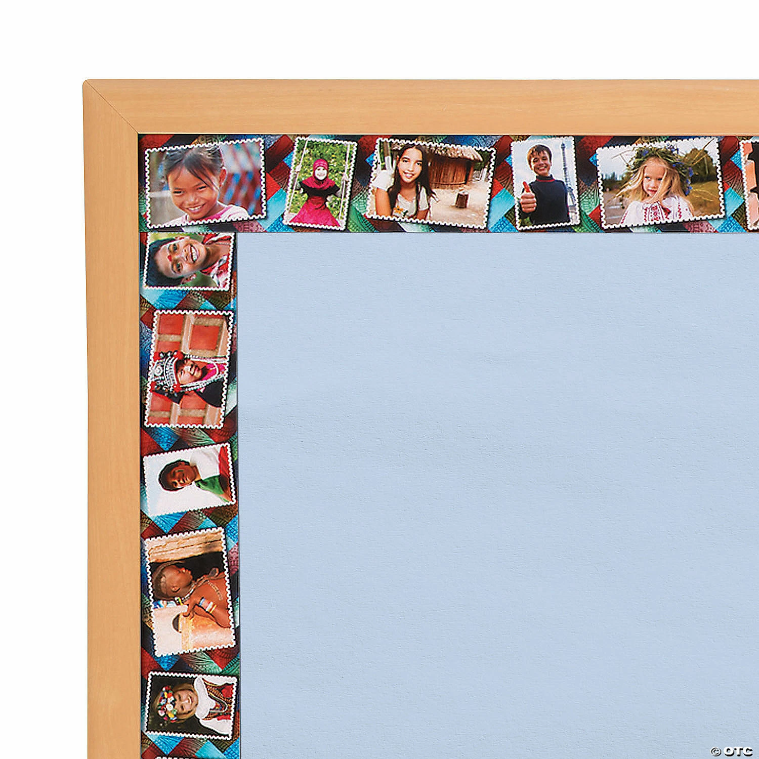 Share some smiling faces of kids from different cultures and places with these bulletin board borders. Printed with postcard images of multicultural children, these make for great classroom décor in social studies and geography rooms. Use them to create a section on the wall for specific assignments or classroom signs. Find more classroom supplies on our website. Paper. 3″ x 39″; assembled, 39 ft. x 2 3/4″. © Demco, Inc.