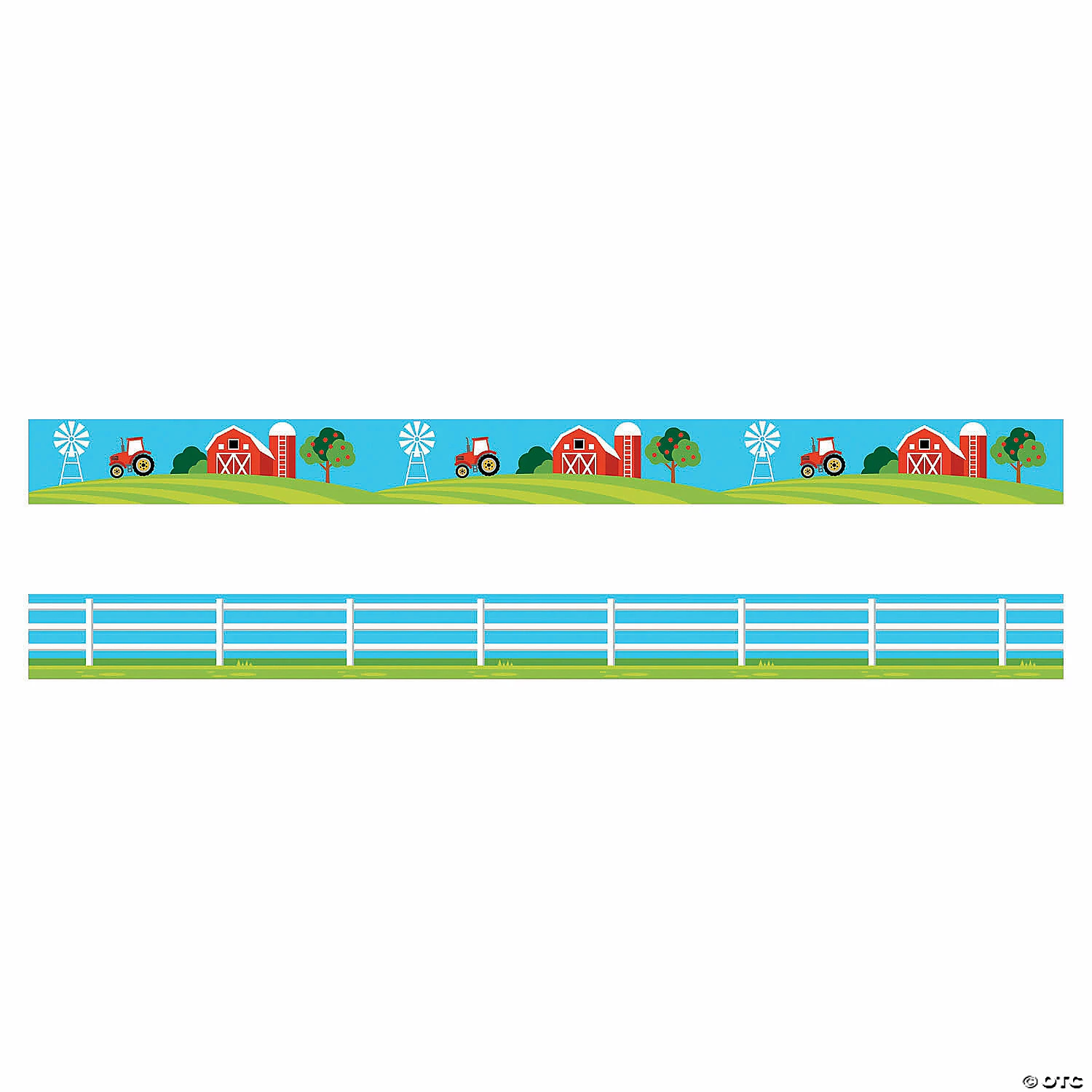 One side features landscapes of a farm, complete with a windmill, tractor and barn, and the other side features a simple farm fence. Use both sides of these classroom decorations to make a cute bulletin board that will draw your students’ eyes! Cardstock. (1 dozen per unit) Each, 36″ x 3″, assembled 36 ft. x 3″. Β© OTC
