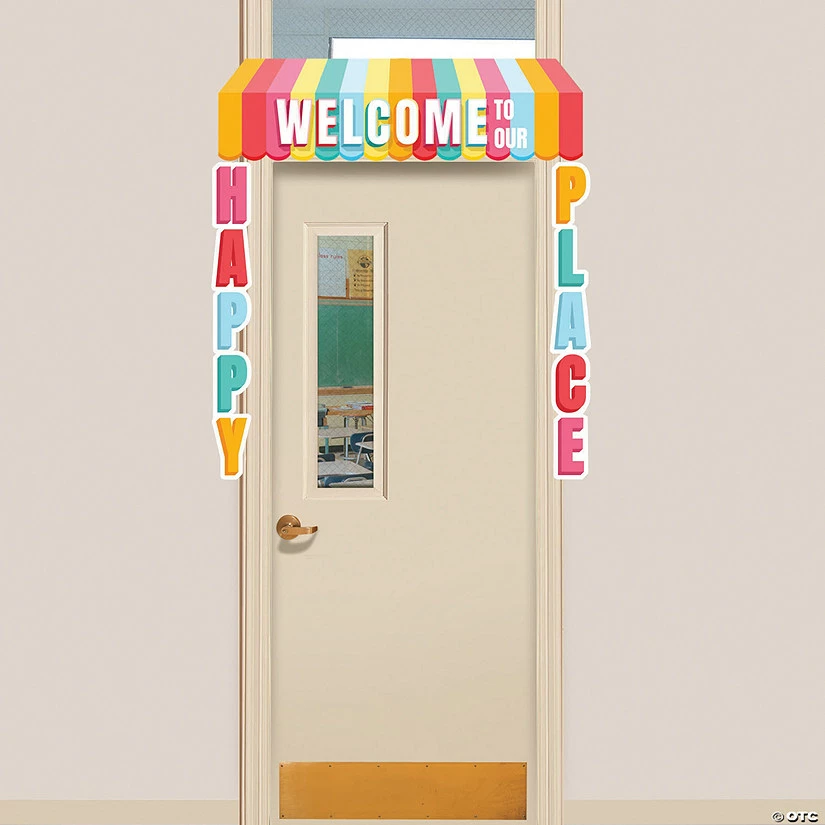 Walk through the door into a happy day! With a welcoming, positive message, this door border is the perfect door decoration for a classroom or homeschool room. Help kids feel at ease and set the tone for happy learning with this colorful door border. Cardstock. (3 pcs. per unit) Assembled, 35-1/2″ x 38″. Simple assembly required. ยฉ OTCHappy Day Door Border Instructions