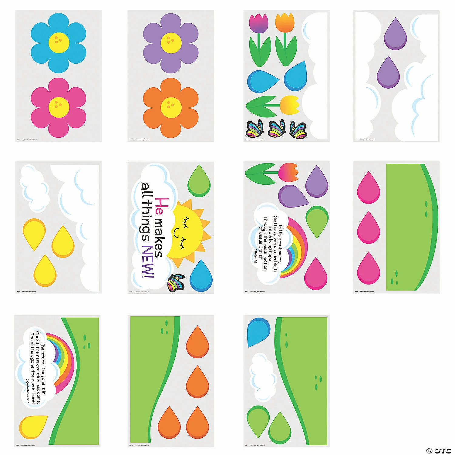 Just as spring renews the flowers, God makes all things new! This lovely bulletin board set is perfect for a Sunday School space or faith-based classroom. With rain drops for each studentโs name and three-dimensional flowers, this bulletin board set includes Biblical truths and bright colors. Itโs sure to brighten up any space, no matter what season itโs displayed! Includes 24 blank cutouts. Cardstock. (48 pcs. per set) 3 1/2″ – 14″ x 5″ – 25″ ยฉ OTC