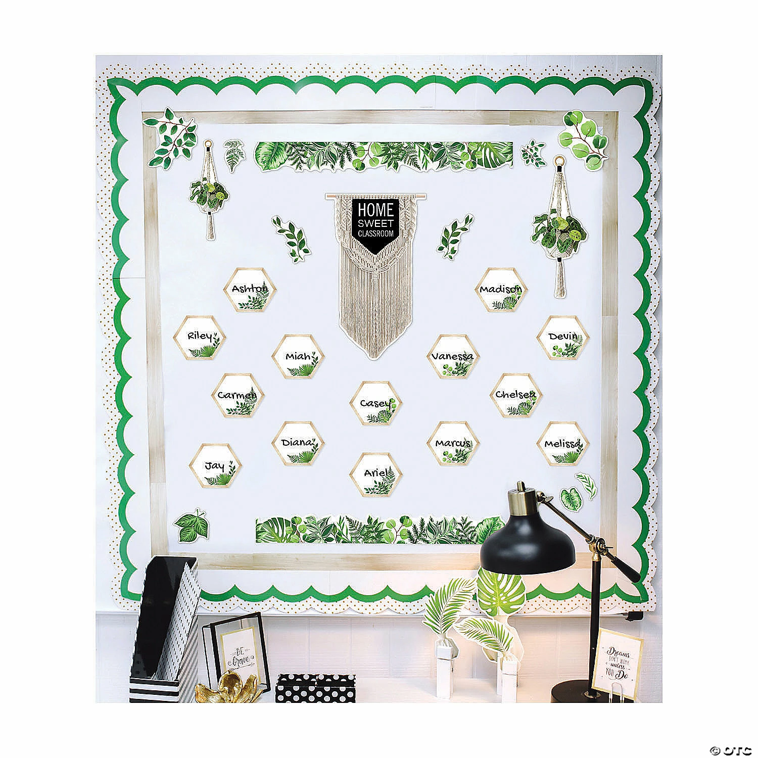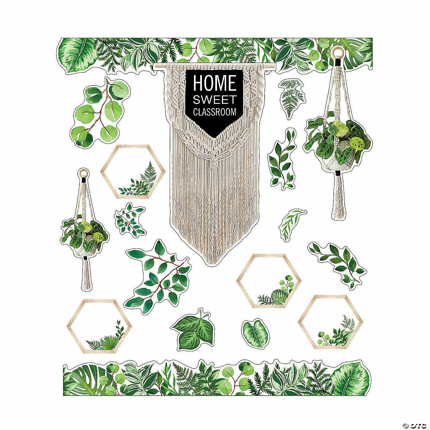 Create a sweet vibe in your classroom with this pretty bulletin board set featuring lovely greenery and a βhome sweet classroomβ message. Featuring a variety of botanical images alongside an image of a macramΓ© sign, this bulletin board set helps give any classroom a more relaxed and welcoming feel. Cardstock. (58 pcs. per unit) 17 1/2″ x 26 3/4″