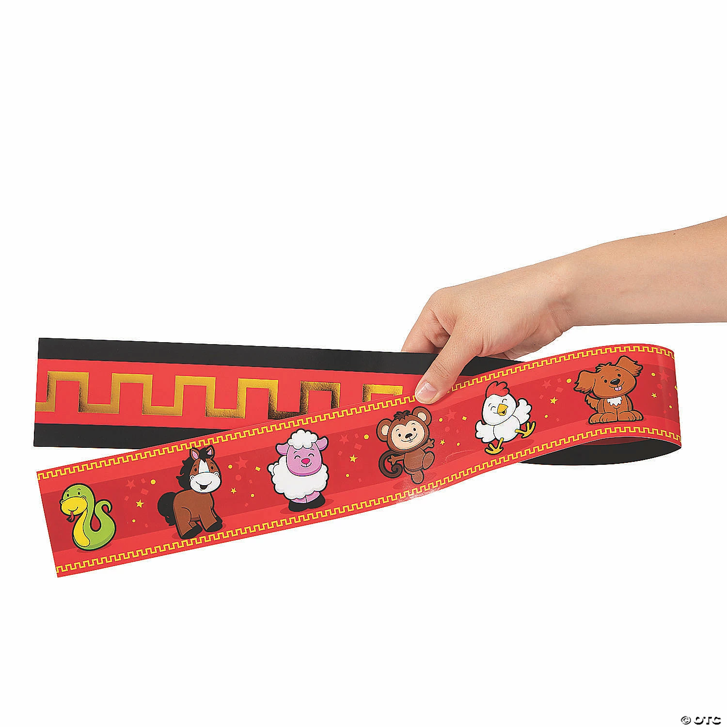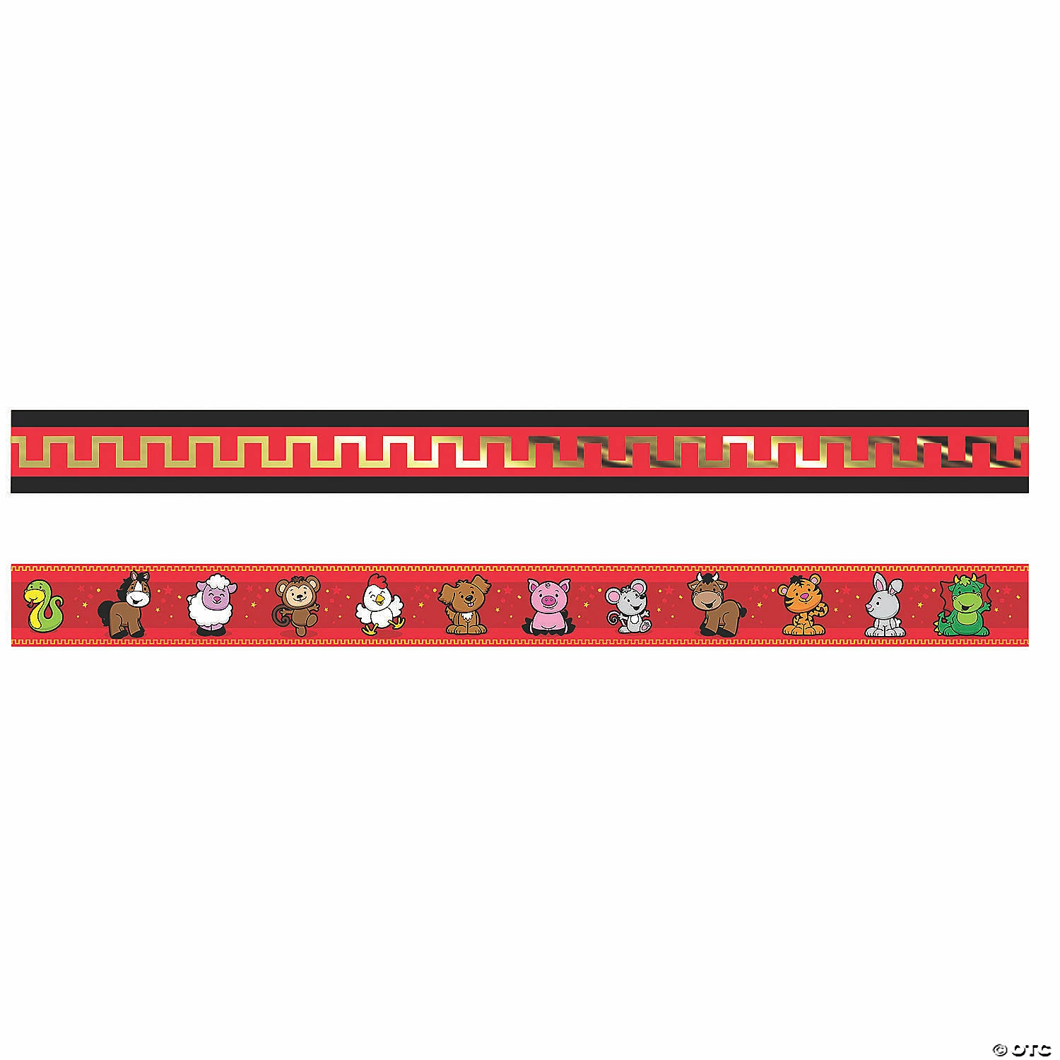 Get your learning space all ready for a cultural celebration! Great for Lunar New Year supplies and classroom dΓ©cor, these bulletin board borders include cute drawings of all the different animals represented by the zodiac. No matter if itβs the year of the pig, dog, chicken or monkey, you can use this year after year! Cardstock. (1 dozen per unit) Each, 36″ x 3″; assembled, 36 ft. x 3″. Β© OTC