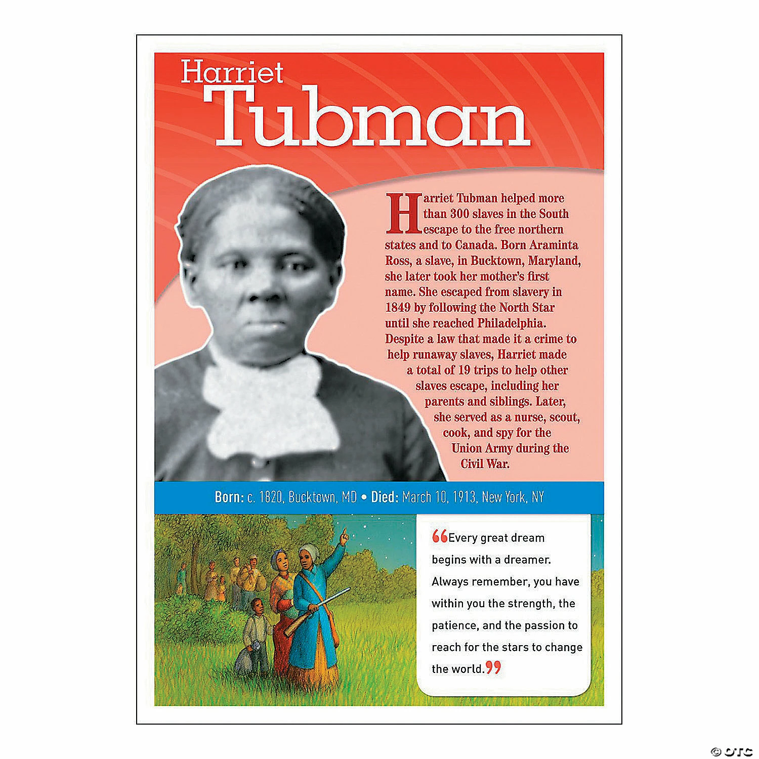 Celebrate the achievements of these 12 notable African Americans who changed history and paved the way to our diverse yet more unified nation. Each mini-poster includes a large photograph, a full-color illustration, a brief biography, and a quotation from each person. Also includes an activity guide.12 mini-posters plus an activity guideSpecial Shipping Information: This item ships separately from other items in your order. This item cannot ship to a P.O. Box. This item may be subject to additional processing days.