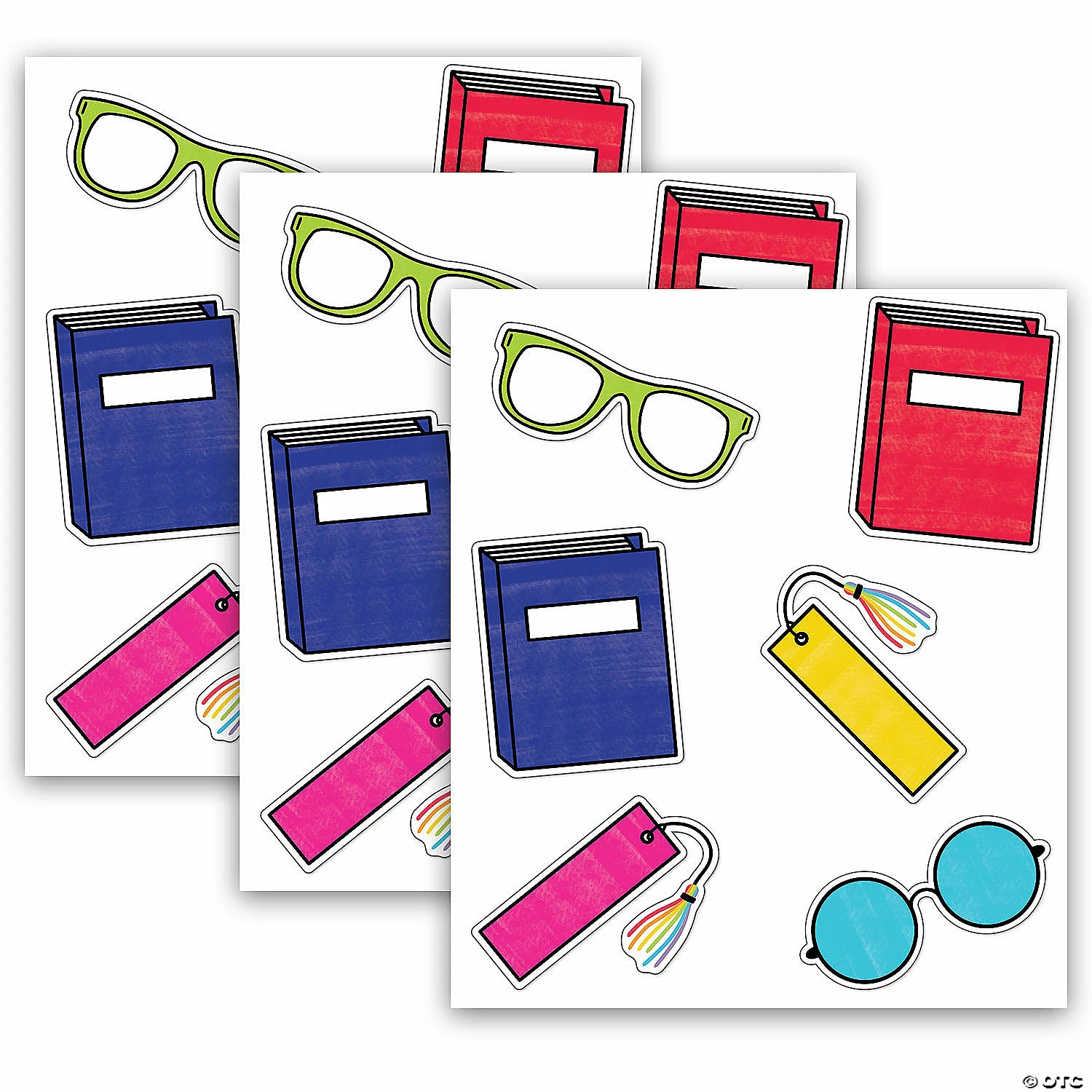 Add the perfect finishing touches to any room or display with Schoolgirl Style’s Light Bulb Moments Let’s Read! Cut-Outs. Cut-outs are ideal for just about anything. Cut-outs range in size from about 3 1/4 inches x 5 3/4 inches to 7 inches x 3 inches. Printed on durable card stock, these versatile, ready-to-use cut-outs are die-cut and reusable if laminated. With plenty of writing room, cut-outs can be used as desk or cubby tags, as invitations, postcards, or flash cards, for craft projects, games, and more. Check out other Light Bulb Moments products to create a cohesive classroom theme. Schoolgirl Style, designed by Melanie Ralbusky, helps take the guesswork out of styling and managing classroom organization and designโadding inspiration and style to quality products for your learning space. Each 36-piece set features an assortment of colorful books, eyeglasses, and bookmarks: 12 books in red and dark blue (6 per color), 12 bookmarks in yellow and pink (6 per color), and 12 eyeglasses in lime and light blue (6 per color). Sold as 3 packs for a total of 108 cut-outs.ย ย Special Shipping Information:ย This item ships separately from other items in your order.ย This item cannot ship to a P.O. Box.ย This item may be subject to additional processing days.ย ย Item is not eligible for expedited shipping.ย ย ย ย You may initiate a return for unused items within 30 days, if the items are in original packaging with all original materials included with the shipment.