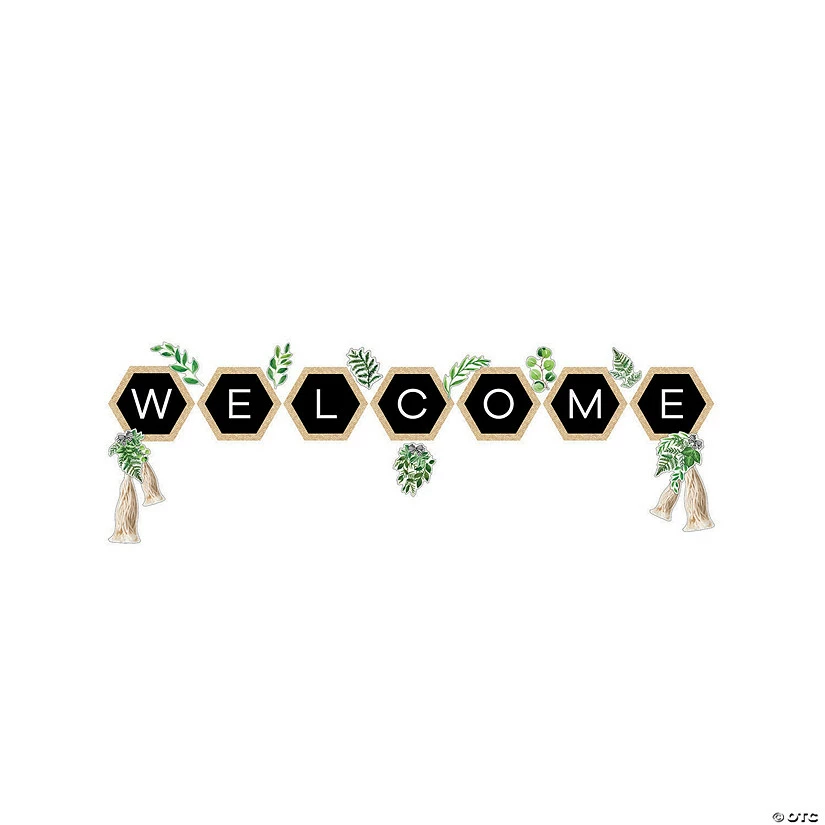 Welcome students to your classroom with style with this bulletin board set featuring letters in hexagon shapes and greenery accents. Great for back to school or for parent/teacher conference nights, this welcome sign is eye-catching and will get noticed! This bulletin board set is a great addition to classroom decorations. Cardstock. (20 pcs. per unit) 17 1/2″ x 27″