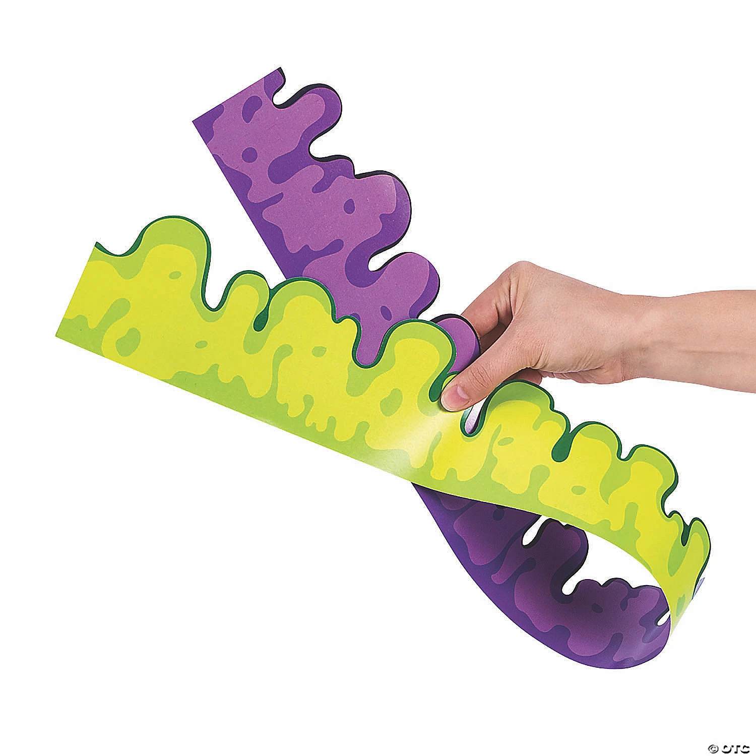 Add some ooey-gooey fun to your learning space! A fun and unique addition to classroom dรฉcor, these double-sided bulletin board borders come made to look like oozing slimeโgreen on one side and purple on the other. Great for use in a science room, these can be used to add trim to doorways, line displays or surround windows. Cardstock. (1 dozen per unit) Each, 36″ x 3 1/2″; assembled, 36 ft. x 3 1/2″. ยฉ OTC
