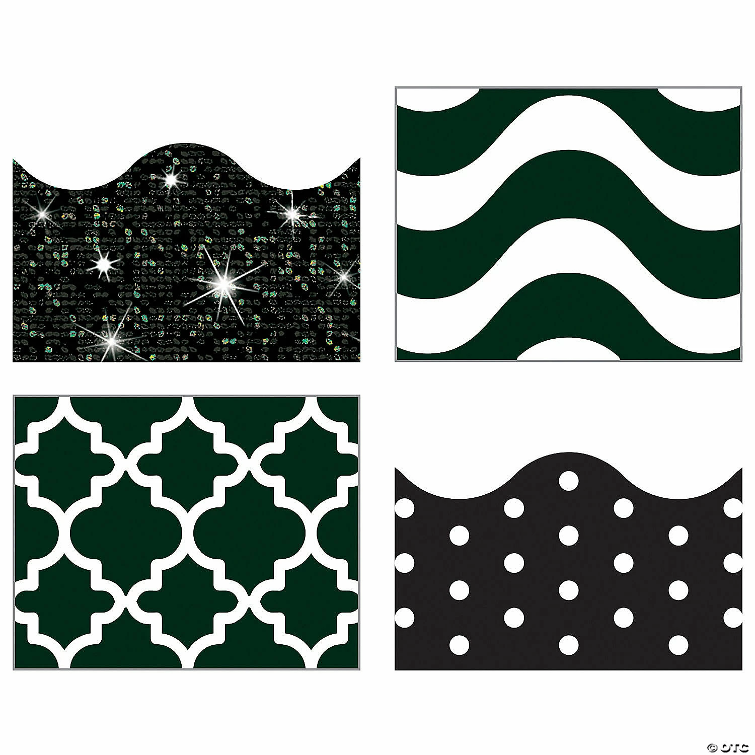 Irresistible designs at your fingertips! Spruce up your spaces and rev up the fun with a convenient Variety Pack of Terrific Trimmers® and Bolder Borders®. Vibrant, contemporary designs create cheerful, inspiring classrooms, add pizzazz to parties and events, inspire clever hats ‘n crowns, and dress up storage containers, cubbies, and shelves. Layer patterns on solids, sparkles, or metallics for extra WOW! Durable and reusable. Includes Black Sparkle Terrific Trimmers®, Moroccan Black Bolder Borders®, Wavy Black Bolder Borders®, and Polka Dots Black Terrific Trimmers®. 143’. Special Shipping Information: This item ships separately from other items in your order. This item cannot ship to a P.O. Box. This item may be subject to additional processing days. ITEM IS NOT ELIGIBLE FOR EXPEDITED SHIPPING You may initiate a return for unused items within 30 days, if the items are in original packaging with all original materials included with the shipment.